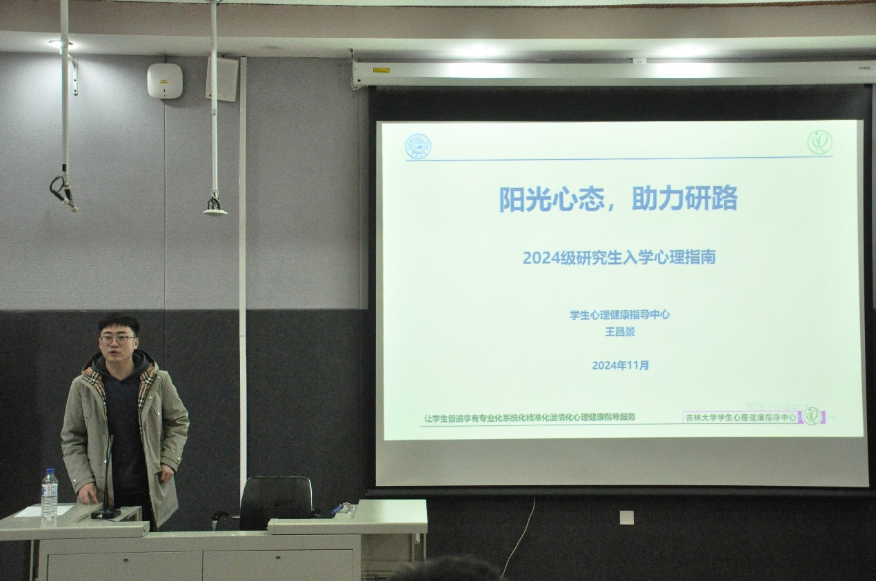 于2024年11月13日下午14:00在鸽子楼125阶梯教室举办了一场面向2024级全体研究生的心理健康专题讲座。本次讲座由校心理健康指导中心的王昌景老师主讲,朋辈心理辅导员鞠天航主持,旨在普及专业知识,帮助学生更好地应对学业和生活中的压力。