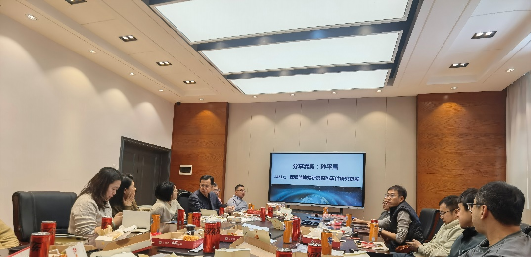 孙平昌老师作为分享嘉宾,以“抚顺盆地始新统极热事件研究进展”为题,向参加此次活动的20余位青年教师详细介绍了全球古新世—始新世极热事件的研究历史与现状,并结合自身科研工作经历,分享针对抚顺盆地的系统研究成果与工作心得。在自由交流环节,老师们围绕 “气候系统古增温过程识别与驱动机制”等方面进行了充分的交流讨论,激发了青年教师在通过多学科交叉共同解决前沿科学问题方面的潜力。