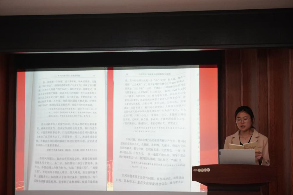 与会党员首先在赵晶老师的带领下学习了“中共中央政治局关于改进工作作风、密切联系群众的八项规定及其实施细则”的核心要义,系统领会其作为新时代共产党人作风“铁规”的重大意义。