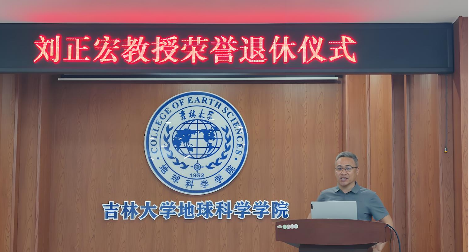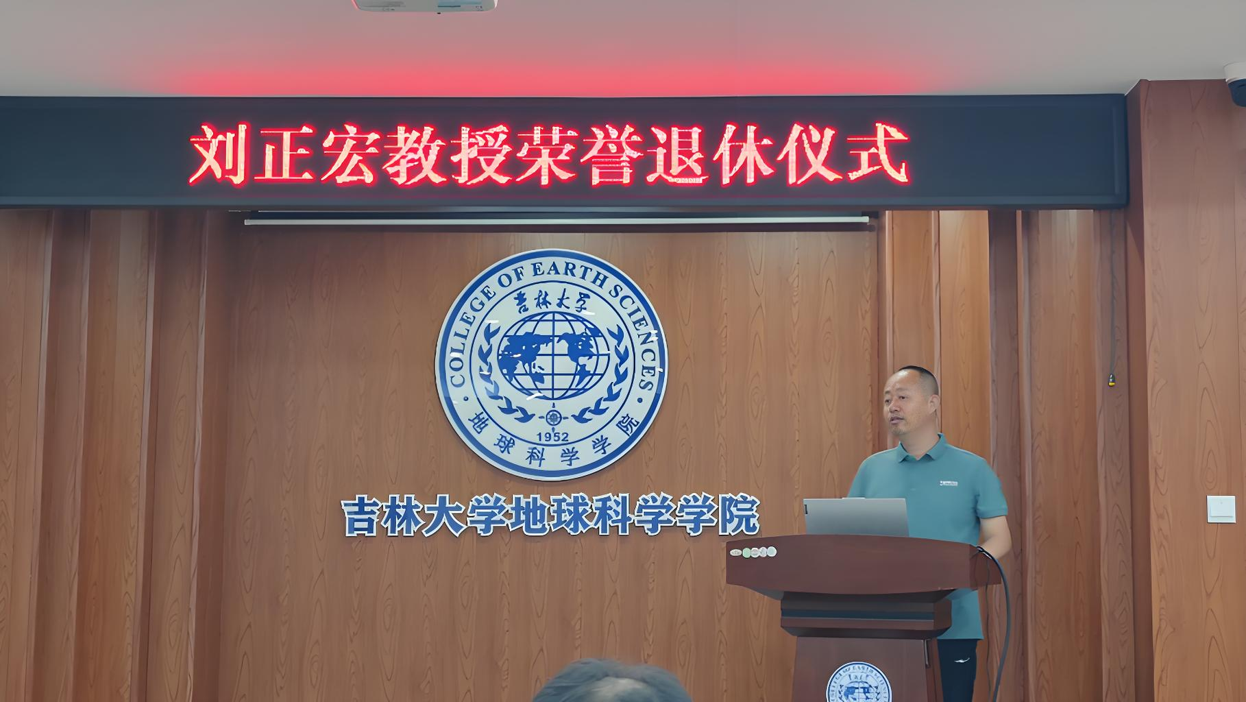 仪式上,衣长涛书记发表了深情讲话。他指出,构造地质学教研室的老师们和刘正宏教授的学生们自发为刘老师举办这场荣休仪式,充分体现了大家发自内心地认同刘老师的高尚品格,肯定其突出贡献,感念其深厚师恩。有感于此,衣长涛书记提出了三点期望:一是传承。希望以刘正宏教授为代表的退休教师们,在身体和时间允许的情况下,继续关注并参与学院建设,指导年轻教师成长。他强调,传承是学校的重要职责,不仅要传承知识,更要传承前辈们做人做事的态度与风骨。这种精神传承将对年轻人产生深远影响,激励他们在各自岗位上不断取得新成绩、作出新贡献;二是敬业。希望构造地质学教研室的年轻教师以刘老师的荣休仪式为契机,在回顾自身求学与科研道路的同时,继续坚守初心、爱岗敬业、心系集体。要学习鸽子楼前辈们的精神,勇于开拓,积极进取;三是协作。学校和学院是大团队,科研组和教学组是小团队。团队协作是取得成果的前提,每位成员都应在团队中找准自己的定位,承担相应职责。希望老师们无论身处何种团队,都能积极扮演好自身角色,贡献力量。