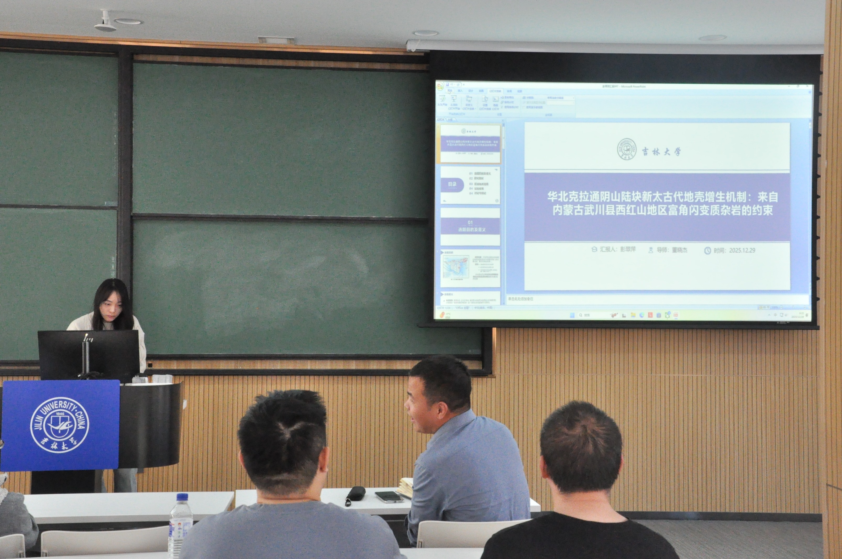 活动上,李嘉祺同学汇报了月球危海皱脊形成的数值模拟研究;张展豪同学汇报了“滑坡易发性预测中评价模型与单元的组合对比:以黑龙江省阿城地区为例”;彭翠萍同学汇报了“华北克拉通阴山陆块新太古代地壳增生机制:来自内蒙古武川县西红山地区富角闪变质杂岩的约束”;张丽强同学汇报了“藏北独泉沟富锰岩石成因及构造背景研究”;张孝衡同学汇报了“滇西崇山变质岩时代、地质意义研究”。
