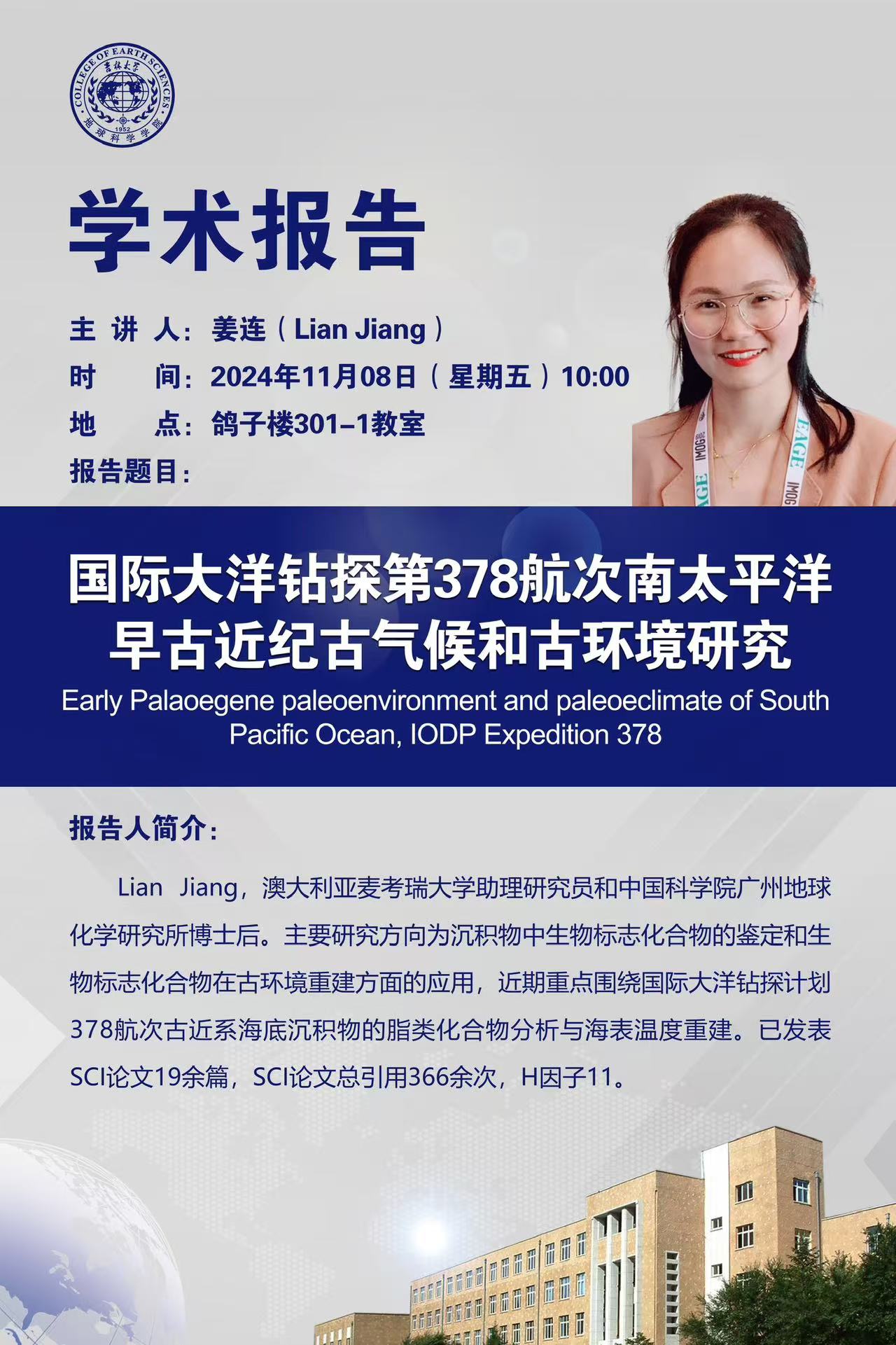 澳大利亚麦考瑞大学Lian Jiang学术报告