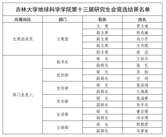为进一步加强学院研究生干部队伍建设,更好地选拔我院研究生会新一届学生干部,本着“公平、公正、公开”的原则,经个人自愿申报、资格审查、竞职演讲、民主投票,综合现实工作表现进行考察,最终确定百家乐网址-真人百家乐 第十三届研究生会学生干部名单,现予以公示: