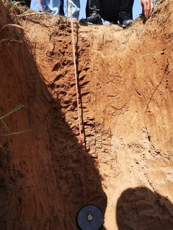 土壤剖面完全展露在同学们面前,老师对其进行详细讲解,然后同学们亲自去对土壤进行各种土壤性质的分析(如颜色、深度、质地、结构、紧实度、侵入体、新生体、斑纹等),进行记录,填表,取样,画图。
