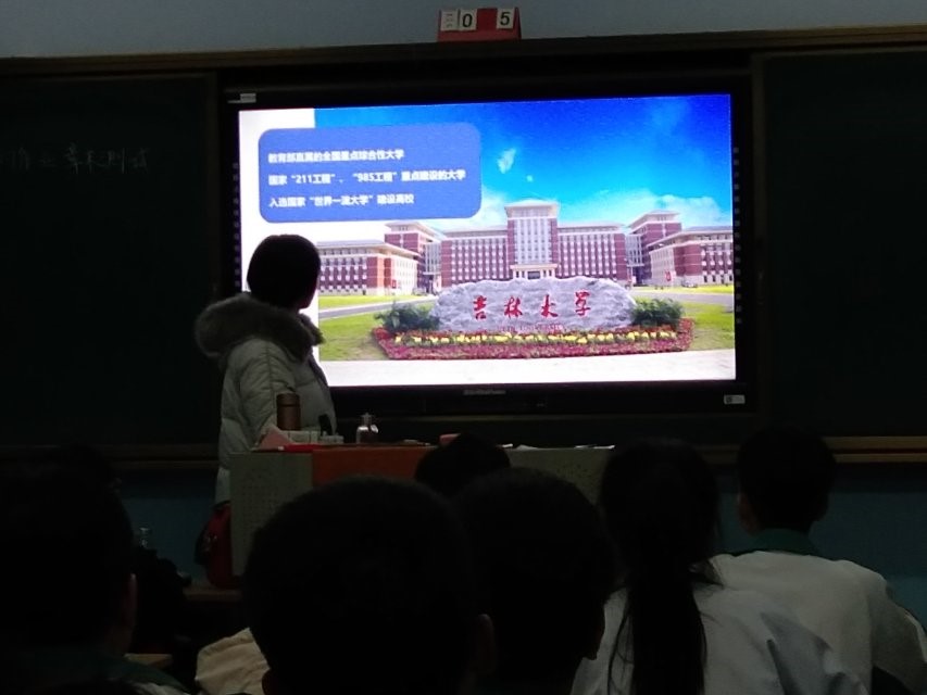 在招生宣传前期,团队不仅认真交流、熟悉吉大官方招生宣传PPT,各位队员还根据各自对大学生活的感悟进行串联、总结,制作出一版独具吉林大学特色的大学生活宣传课件。在团队精心的筹备下,在与大安一中的积极沟通下,团队招生宣传活动在母校高三课堂上顺利开展。